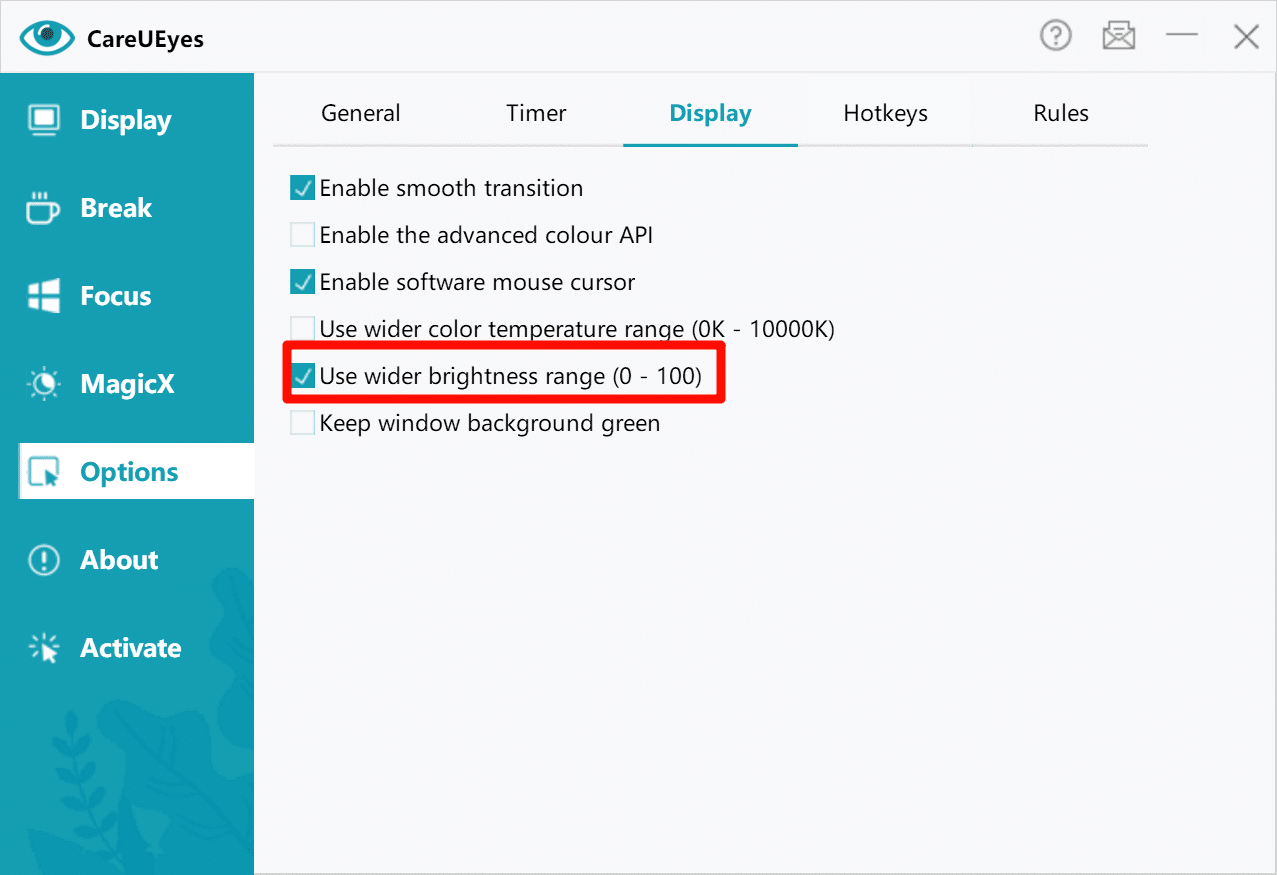 CareUEyes solves this with advanced screen brightness control and screen dimmer technology. It allows you to fine-tune your screen brightness far beyond normal hardware limits, creating a softer and more comfortable viewing experience.